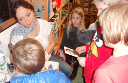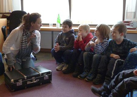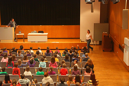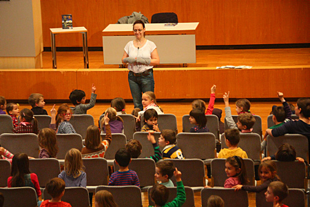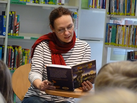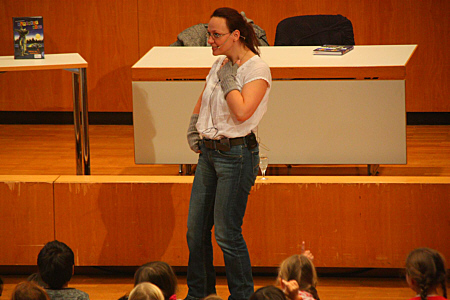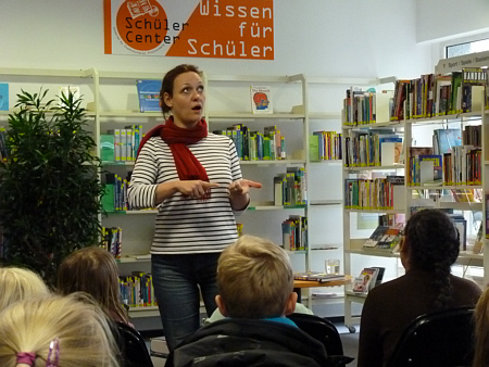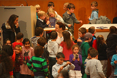 habe ich am 04.12.2013 im Haus der Wirtschaft vor 200 Kindern aus vier Schulen gelesen. ![]() Die Kinder haben mich mit einer wahnsinnig lauten Rakete hergeholt.