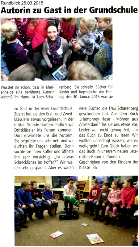 Danke für den tollen Artikel, liebe Klasse 3a! Es war aber auch ein wirklich toller Morgen bei Euch allen, an dem ich viel Spaß hatte!![]() |